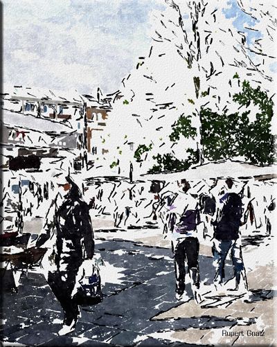 Mein Atelier ist der Computer, in dem ich mir "virtuelle Werkzeuge" zu eigen mache. Zigtausend verschiedene Pinsel, Spachteln, Kreiden, Federn, Buntstifte und noch vieles mehr, stehen mir dort zur Verfügung. Ein Leben reicht nicht aus, um diese Möglichkeiten alle auszuprobieren. Demnach bin ich ständig am Experimentieren und Ausprobieren und arbeite an einem Bild so lange mit verschiedenen Programmen, bis es mir gefällt, bis es interessant ist und ich selbst damit zufrieden bin. Demzufolge steckt kein klarer Stil dahinter und auch keine bestimmte Maltechnik. Alle Möglichkeiten der Programme werden bunt und skrupellos gemischt, Farben hin und her geschoben, Kontraste verändert, Konturen extrahiert, Strukturen abstrahiert, Details reduziert, Impressionismus, Expressionismus u.a. simuliert. Wenn ich auf meine älteren Bilder zurückschaue, stelle ich immer wieder fest, dass mir heute die Bilder besser gefallen, die sich einem traditionellen Stil oder einer traditionellen Maltechnik annähern. Diese Sichtweise beeinflusst vermutlich ganz wesentlich meine Entscheidung, wann ich mit der Arbeit an einem Bild aufhöre.